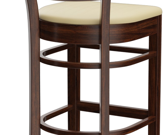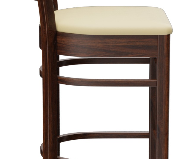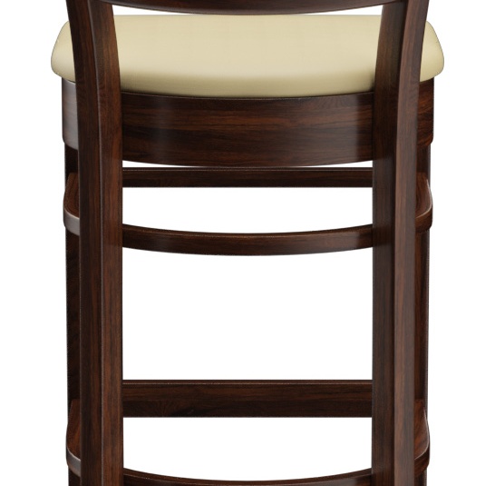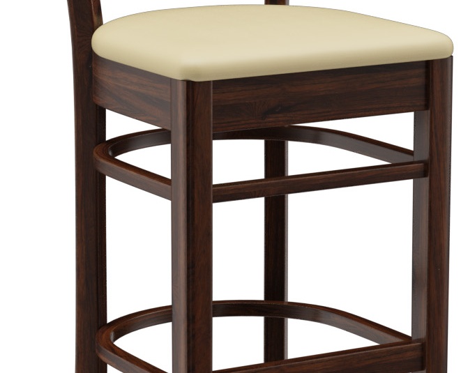 Ein typisches Trattoria-Sitzmöbel ist das Modell Ute durch die sich nach unten verjüngende Sprossenrückenlehne - als Stuhl und Barhocker verfügbar. Ute ist in Hevea-Holz in der Farbe Nussbaum erhältlich. Der Polstersitz aus dem Kunstleder Casual steht in drei Farben zur Auswahl. Für den Barhocker ist ein Trittschutz verfügbar.- Vollholzstuhl
