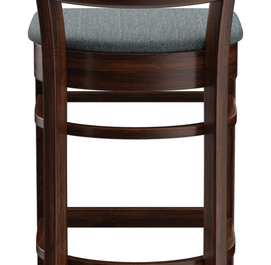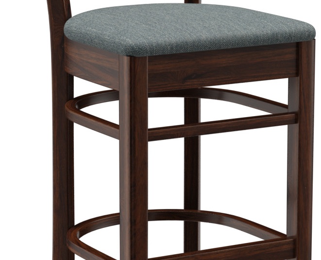 Ein typisches Trattoria-Sitzmöbel ist das Modell Ute durch die sich nach unten verjüngende Sprossenrückenlehne - als Stuhl und Barhocker verfügbar. Ute ist in Hevea-Holz in der Farbe Nussbaum erhältlich. Der Polstersitz aus dem Kunstleder Casual steht in drei Farben zur Auswahl. Für den Barhocker ist ein Trittschutz verfügbar.- Vollholzstuhl
