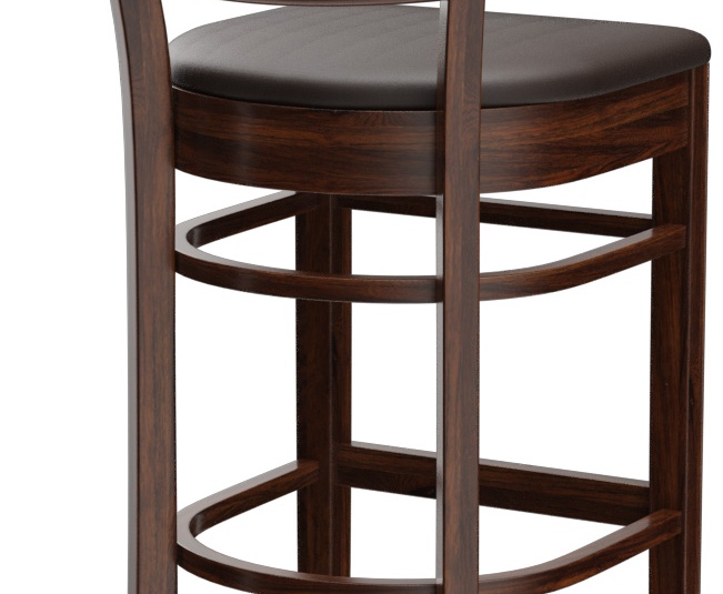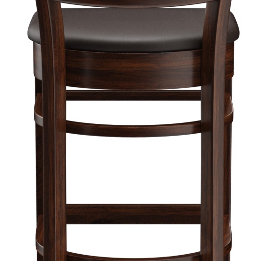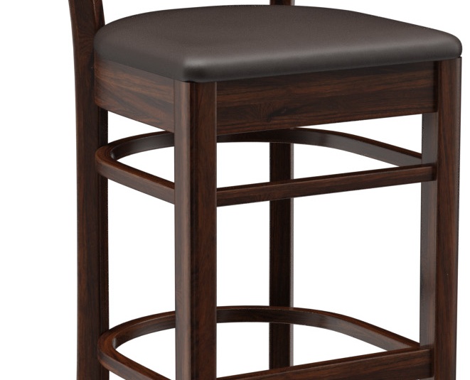 Ein typisches Trattoria-Sitzmöbel ist das Modell Ute durch die sich nach unten verjüngende Sprossenrückenlehne - als Stuhl und Barhocker verfügbar. Ute ist in Hevea-Holz in der Farbe Nussbaum erhältlich. Der Polstersitz aus dem Kunstleder Casual steht in drei Farben zur Auswahl. Für den Barhocker ist ein Trittschutz verfügbar.- Vollholzstuhl