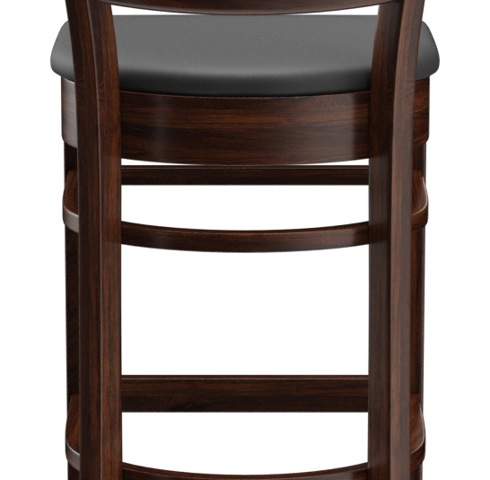 Ein typisches Trattoria-Sitzmöbel ist das Modell Ute durch die sich nach unten verjüngende Sprossenrückenlehne - als Stuhl und Barhocker verfügbar. Ute ist in Hevea-Holz in der Farbe Nussbaum erhältlich. Der Polstersitz aus dem Kunstleder Casual steht in drei Farben zur Auswahl. Für den Barhocker ist ein Trittschutz verfügbar.- Vollholzstuhl