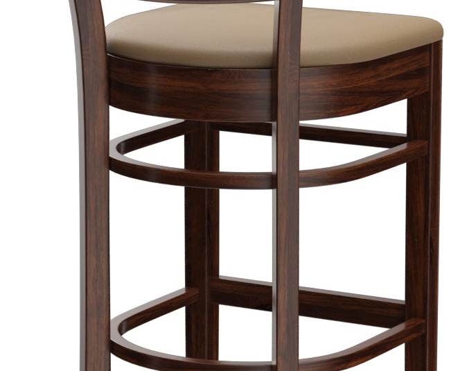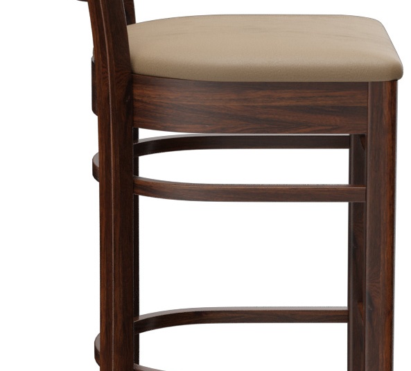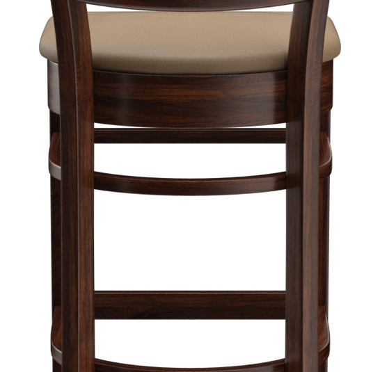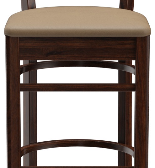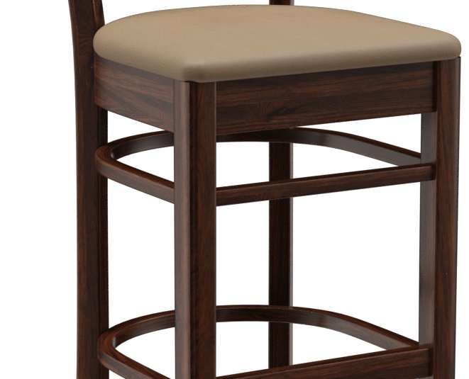 Ein typisches Trattoria-Sitzmöbel ist das Modell Ute durch die sich nach unten verjüngende Sprossenrückenlehne - als Stuhl und Barhocker verfügbar. Ute ist in Hevea-Holz in der Farbe Nussbaum erhältlich. Der Polstersitz aus dem Kunstleder Casual steht in drei Farben zur Auswahl. Für den Barhocker ist ein Trittschutz verfügbar.- Vollholzstuhl