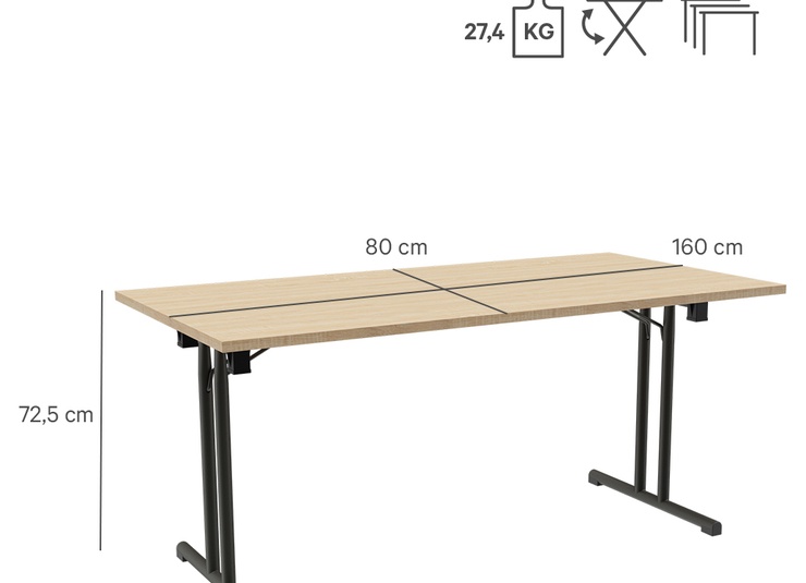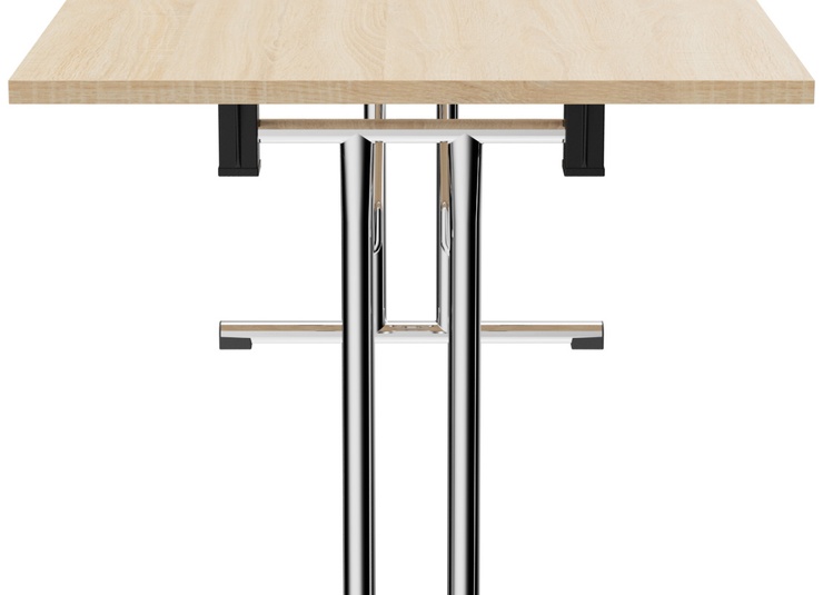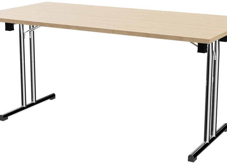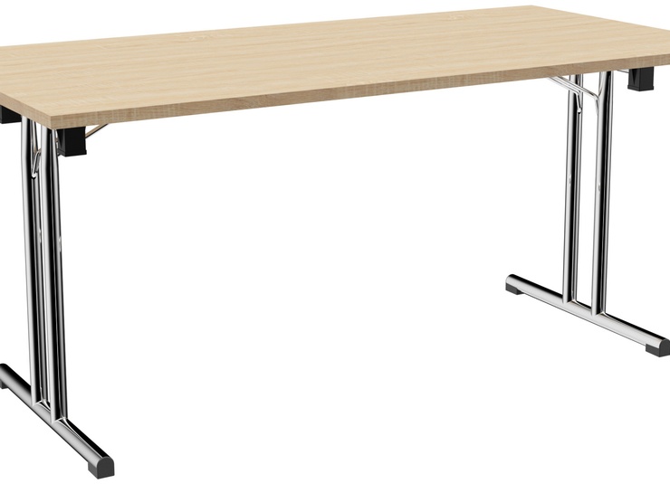 Durch sein verchromtes oder schwarz pulverbeschichtetes Gestell mit den bewährten T-förmigen Füßen, die sich für den Transport oder die Lagerung einklappen lassen, bringt Neria frischen Wind in Tagungsräume. Die Tischplatte aus hochverdichtetem Schichtstoff ist in zwei Farben - uni oder Holzdekor - erhältlich. Neria ist stapelbar.Artikelnummer