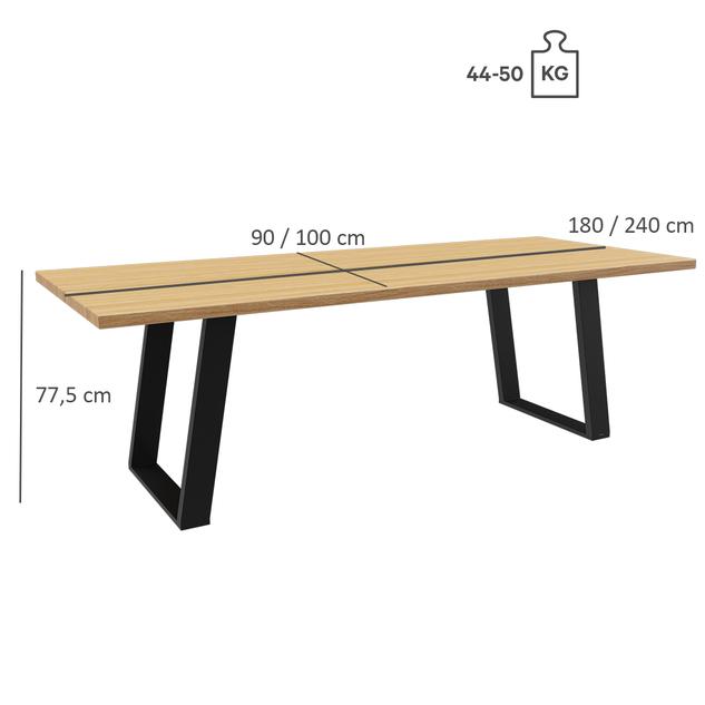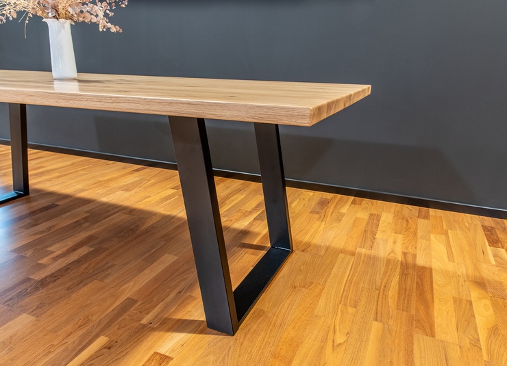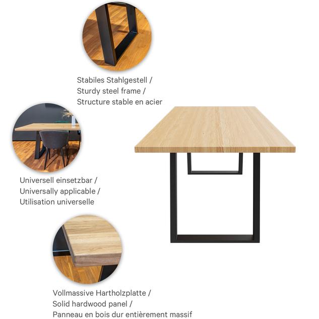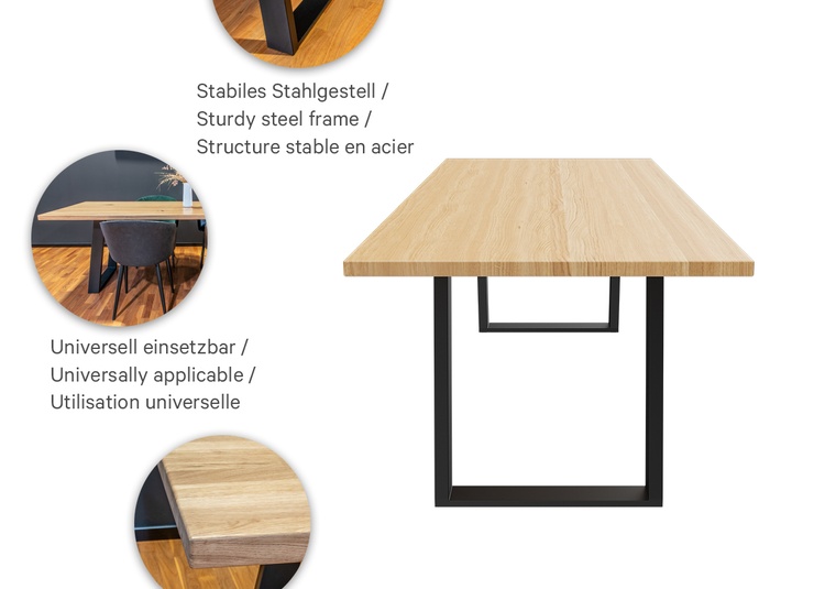 Dieser hochwertige Gastronomietisch vereint erstklassige Materialien mit durchdachter Konstruktion. Die vollmassive Tischplatte aus 4 cm starker Eiche mit durchgehenden Lamellen zählt zur hochwertigsten Ausführung im Möbelbau und besticht durch ihre natürliche, edle Optik. Eine strapazierfähige, pflegeleichte Lackierung schützt die Oberfläche und macht sie ideal für den täglichen Einsatz. Stahlunterzüge unter der Platte verhindern einen Verzug des Holzes und sorgen dauerhaft für Formstabilität. Das robuste Stahlgestell gewährleistet maximale Standfestigkeit und Langlebigkeit – perfekt für den professionellen Einsatz. Erhältlich in zwei Größen: 90 × 180 cm und 100 × 240 cm. Sondergrößen auf Anfrage möglich.Artikelnummer