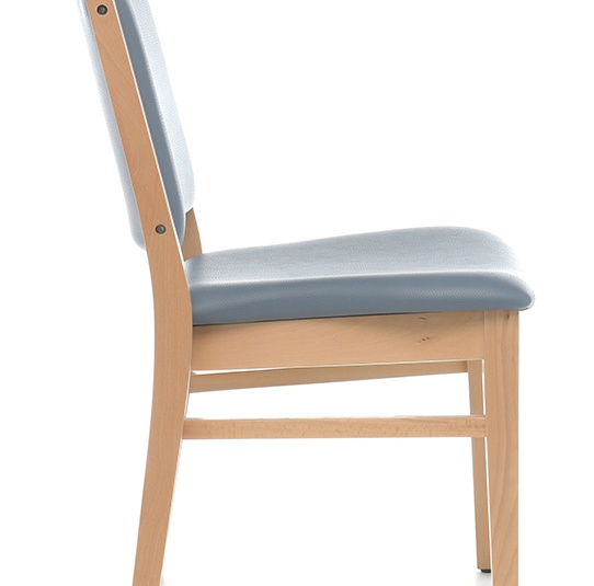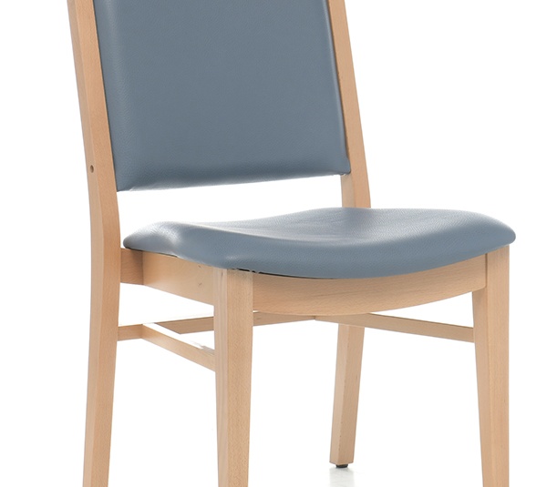 Zaina gibt es als Stuhl und Armlehnstuhl. Durch die klare Form des Gestells und den markanten schön geschwungenen, an einen Knauf erinnernde Armlehnen, wirkt der Armlehnstuhl gediegen und modern zu gleich. Zusätzlich bieten die Armlehnen beim Aufstehen einen guten Halt. Die breite vorne leicht überstehende und abgerundete Sitzfläche sorgen für ein bequemes Sitzen. Die Stühle machen sowohl im Speisesaal, im Aufenthaltsraum als auch in einem Zimmer eine gute Figur. Beide Stühle werden in Buchenholz gebeizt in Eiche natur sowie in Nussbaum gebeizt und lackiert angeboten. Für die Bezüge gibt es eine Auswahl schöner Farben und Muster, die jedem Raum etwas lebendiges verleihen. Alle Health & Care Kunstleder und Stoffe sind für den Einsatz im Pflegebereich qualifiziert. Mit Zaina entscheiden Sie sich für einen klassischen Health & Care Stuhl mit einem guten Preis-/Leistungsverhältnis.Artikelnummer