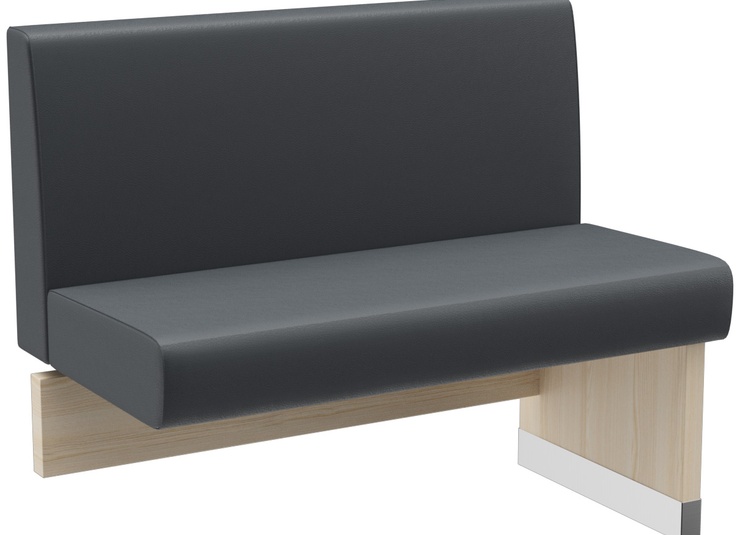 Modulares Kompaktbanksystem: Die H-LINE überzeugt mit kompakter Bauweise und geringer Gesamttiefe – ideal für Räume mit begrenztem Platzangebot. Dank ihres modularen Systems ist sie sowohl in Esstisch- als auch in Stehtischhöhe erhältlich und bietet maximale Flexibilität für verschiedenste Einsatzbereiche. Für die individuelle Gestaltung stehen drei hochwertige Dekore zur Auswahl: klassisches Schwarz, freundliches Eiche hell und edles Nussbaum dunkel. Sitz- und Rückenpolster sind in diversen Bezugsvarianten erhältlich und ermöglichen eine harmonische Integration in jedes Raumkonzept. Die großzügigen Module mit wenigen Fugen schaffen ein ruhiges, elegantes Gesamtbild, während die durchdachte Konstruktion mit reduzierter Zahl an Zwischenstützen hohe Stabilität bietet – ideal für den langlebigen Einsatz im anspruchsvollen Objektbereich.Artikelnummer