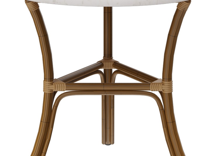 Durch die typische Bistrotischform und den Unterbau in Rattanoptik ist Marysol die ideale Ergänzung zu den Stuhlmodellen im Brasserie-Look. Das Gestell aus pulverbeschichtetem Aluminium verfügbar als Drei- oder Vierbeiner, kann mit verschiedenen Tischplatten kombiniert werden - mal klassisch, mal modern. Das 3-Bein Gestell ist mit runden Platten in der Größe 68cm und 70cm konfigurierbar. Marysol ist indoor wie outdoor einsetzbar.Artikelnummer