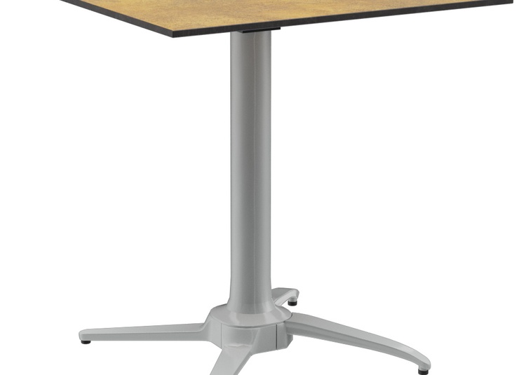 Das Tischgestell Elon in Esstischhöhe schafft durch eine integrierte mechanische Nivellierungstechnik bis zu 18 mm Höhenausgleich und eignet sich damit auch für besonders unebene Flächen wie Pflastersteine. Das Gestell aus pulverbeschichtetem Aluminium ist in den Farben Silber oder Schwarz erhältlich und mit runden Tischplatten mit einem Durchmesser von 60 bis 80 cm und eckigen Platten im Format 60 x 60 cm bis 80 x 80 cm kombinierbar. Elon hat einen Kippmechanismus, sodass die Tische seitlich stapelbar sind. Das Gestell, das Funktionalität und Design vereint, wurde mit dem Red Dot Design Award 2017 ausgezeichnet.Artikelnummer