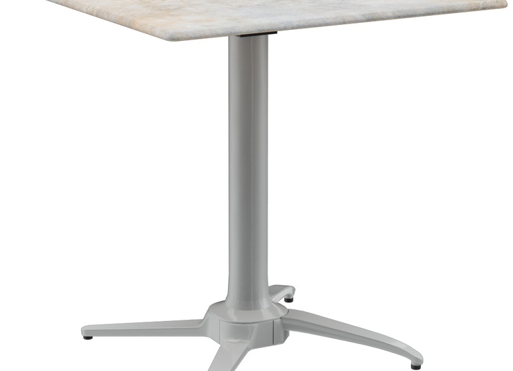 Das Tischgestell Elon in Esstischhöhe schafft durch eine integrierte mechanische Nivellierungstechnik bis zu 18 mm Höhenausgleich und eignet sich damit auch für besonders unebene Flächen wie Pflastersteine. Das Gestell aus pulverbeschichtetem Aluminium ist in den Farben Silber oder Schwarz erhältlich und mit runden Tischplatten mit einem Durchmesser von 60 bis 80 cm und eckigen Platten im Format 60 x 60 cm bis 80 x 80 cm kombinierbar. Elon hat einen Kippmechanismus, sodass die Tische seitlich stapelbar sind. Das Gestell, das Funktionalität und Design vereint, wurde mit dem Red Dot Design Award 2017 ausgezeichnet.Artikelnummer