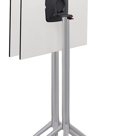 Vielseitig einsetzbar und praktisch im Handling ist Kari. Der seitenstapelbare Tisch im zeitgemäßen Design ist als Drei- oder Vierzeher verfügbar. Das Gestell aus pulverbeschichtetem Aluminium kann mit verschiedenen Tischplatten kombiniert werden und ist mit manuellen Verstellgleitern ausgestattet. Durch den Kippmechanismus lassen sich die Tische platzsparend seitlich stapeln.Artikelnummer