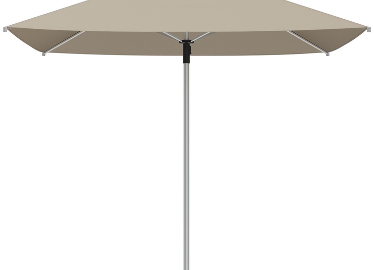 Der Funktionale: Mit einer Spannweite von 2,40 x 2,40 Metern ist der quadratische Sonnenschirm Sama nahezu universell einsetzbar. Die wetterfeste Sonnenschirmbespannung in der Farbe Natur besteht aus Polypropylen, der Mast mit einem Durchmesser von 40 Millimetern aus eloxiertem Aluminium. Sama bietet UV-Schutz in der Höhe LSF 80 nach der UV-Norm 801. Die Bespannung lässt sich abnehmen und waschen. Passend zum Schirm gibt es einen 50-Kilogramm-Sockel mit Trolley-Funktion.Artikelnummer