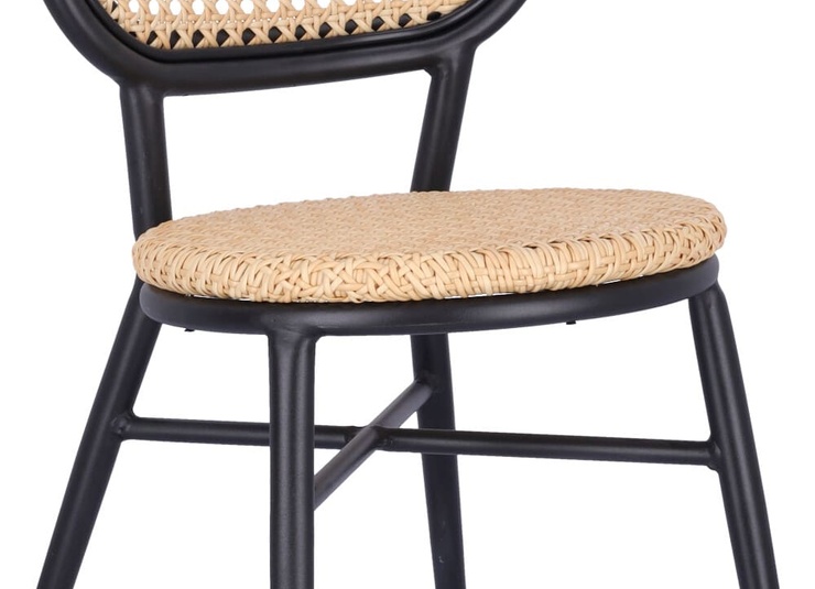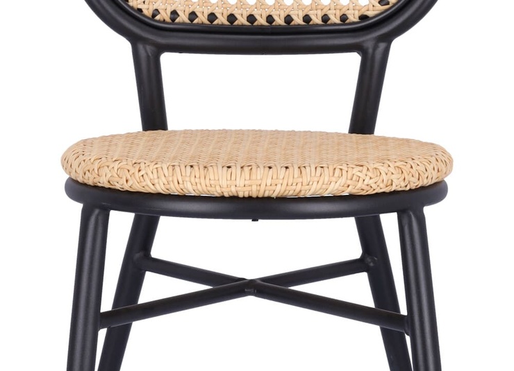 Ein Hingucker auf jeder Terrasse ist der Stuhl Madalina – wahlweise mit oder ohne Armlehnen erhältlich. Die hochwertige – in zwei Farbvarianten erhältliche – Flechtung aus Polyethylene, in der Ausführung des Wiener Geflechts, lässt den Stuhl elegant und besonders wirken. Die runde Formsprache der Sitzfläche und der Armlehnen wirkt einladend und gleichzeitig harmonisch. Das Modell ist stapelbar und zeichnet sich, durch sein schwarz pulverbeschichtetes Aluminiumgestell, mit geringem Gewicht, aus.Artikelnummer